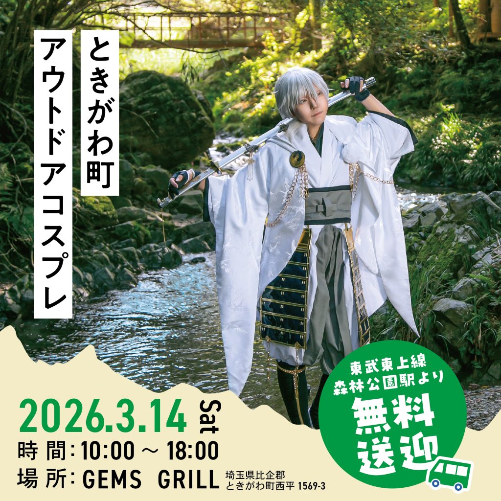 ときがわで開催し、ご好評をいただいたコスプレイベント第1回に続き、 第2回・第3回コスプレイベントの開催が決定しました。