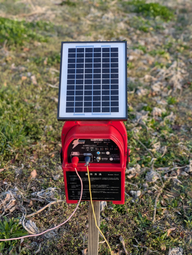 ↓ソーラー式の電気柵でイノシシを撃退!!!!